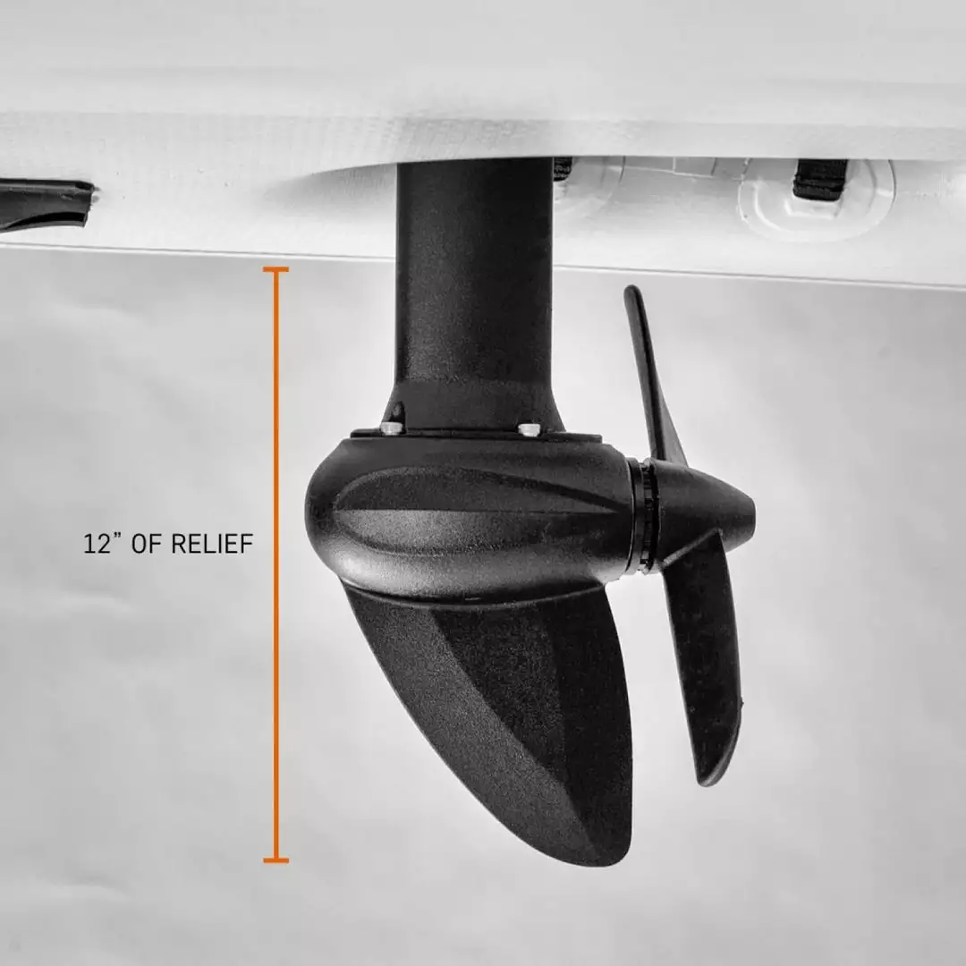 - COMPACT FOLDING KICK-UP RUDDER SYSTEM: The steering rudder is spring-loaded, allowing it to kick up if it comes in contact with the ground or debris, keeping it from getting stuck or damaged.