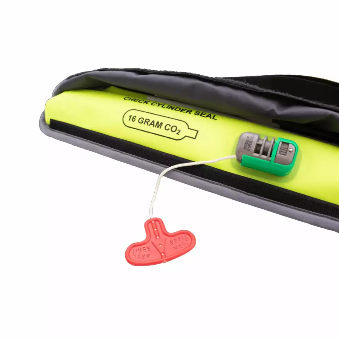 - 16g Cylinder / 16.5 Pounds Buoyancy when inflated with the CO2 cylinder and 29.5 Pounds of Buoyancy with secondary oral inflated