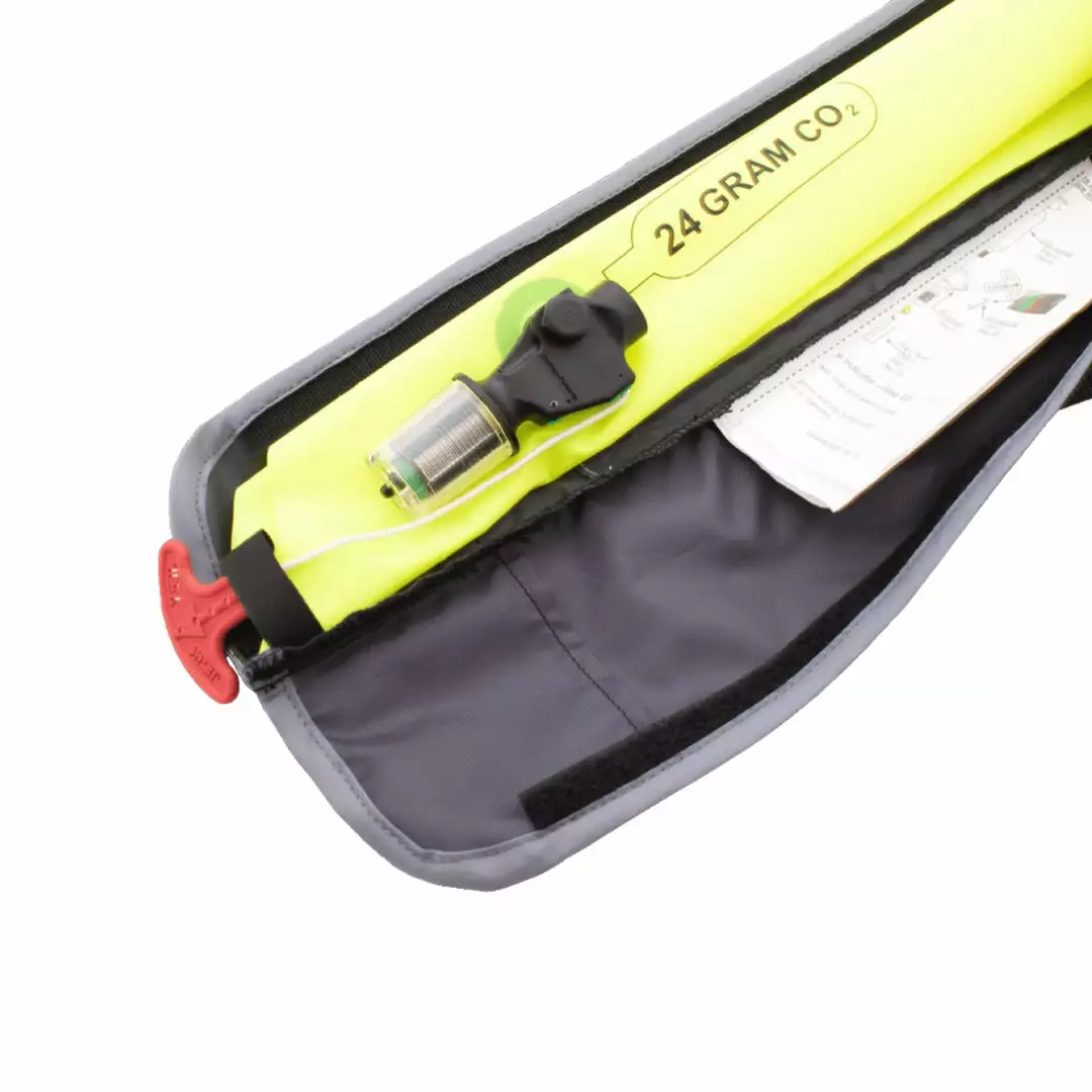 - Automatically inflates upon immersion. Can also be inflated by pulling the activation cord. Can be set up to be manual inflated with the activation cord.