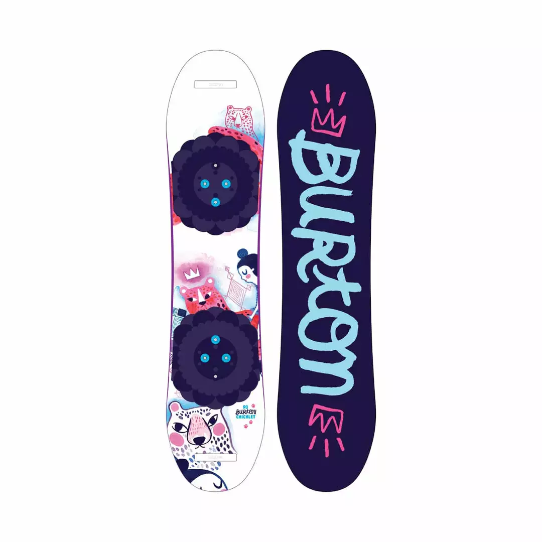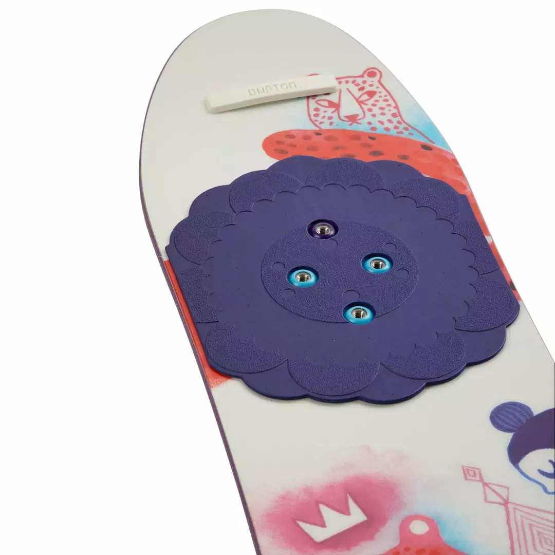 When you want to see them succeed, put them on the softest, most stable kids’ beginner board in snowboarding. The kids’ Burton Chicklet Snowboard is the ticket for kids who want to start snowboarding and quickly learn the basics. What makes it so perfect is the beginner-friendly combo of a convex base with upturned edges and the softest flex possible so that even the lightest weight riders can master turning and stopping. The catch-free feeling continues with a flat profile from nose to tail that’s extra stable for better balance and board control. Attach the Riglet accessory to the nose or tail of the 80-120cm sizes to tow them around ’til they’re comfortable enough to add bindings.