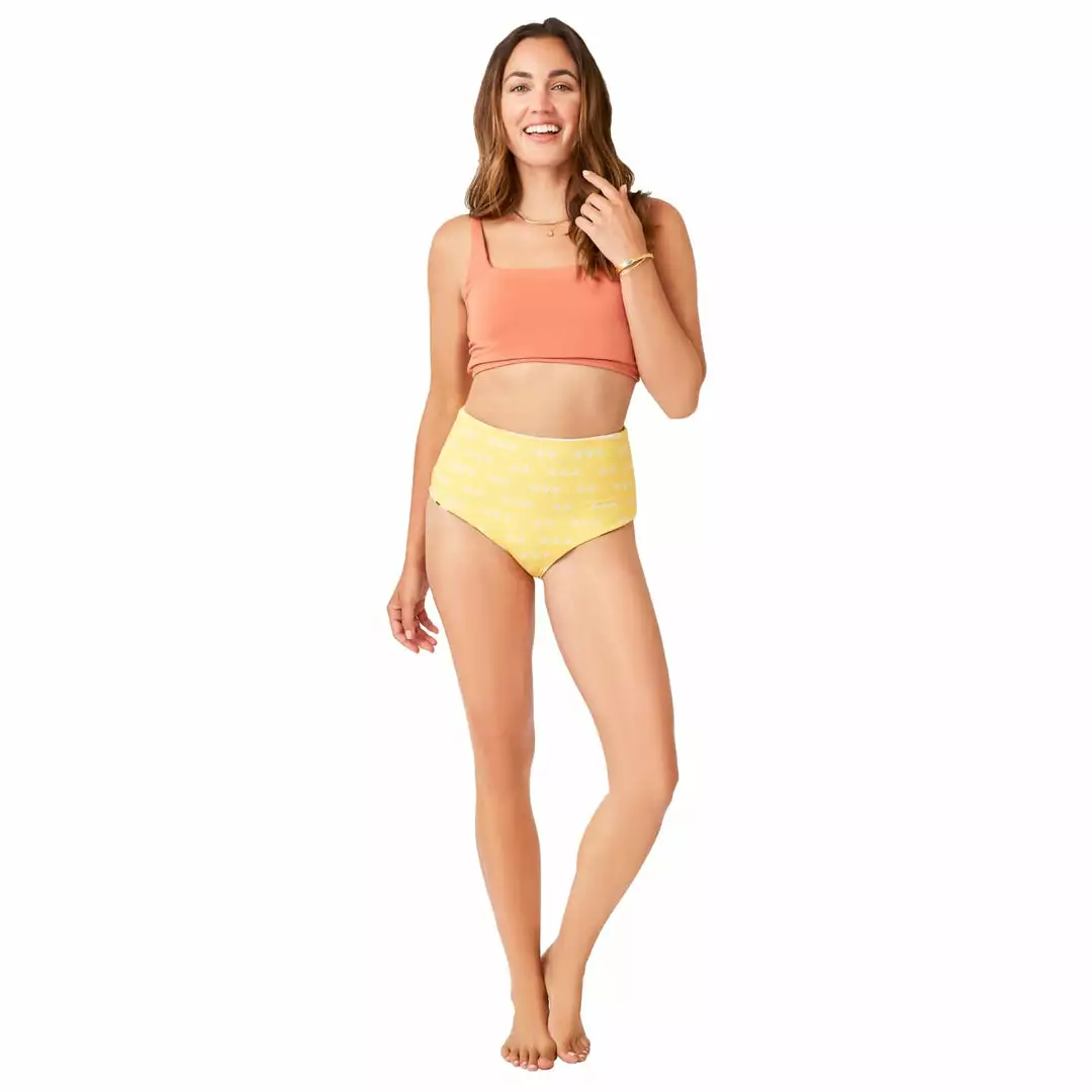 The retro-inspired Erin sits high on your waistline with moderate coverage in the back, an incredibly flattering shape. The fully reversible design makes it a vacation favorite. Feeling in the mood for a color change half way through the day? The Erin bottom is perfect for you.