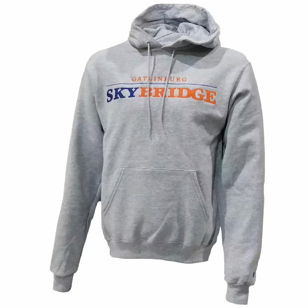 Savor those memories of the Gatlinburg SkyBridge in Gatlinburg, Tennessee with this Champion Hoody. Made with eco-friendly Powerblend fleece with traceable U.S. grown cotton and requires 2-5 times less water. Even better, 10% recycled polyester fibers, helps keep recycled plastic bottles out of landfills. Features include extra stitch details for durability, a double-layer hood with metal grommets, soft back neck tape and hand-warming pouch pocket.Â