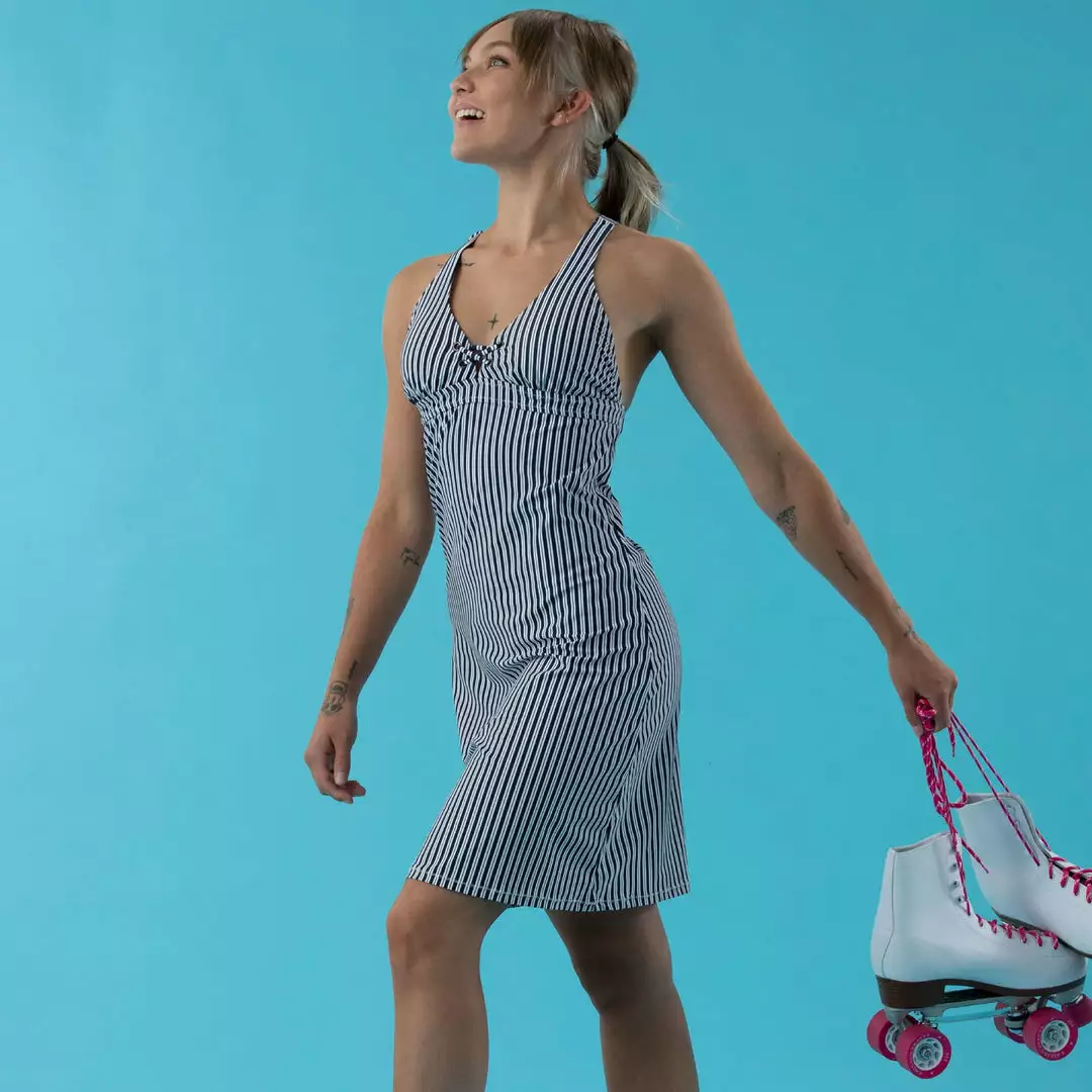 Our popular Nalu swim top is now a dress with 4-way stretch and UPF 50+ sun protection. Ready for the water or fun in the sun, this striped dress keeps your assets covered and shows off your best features.