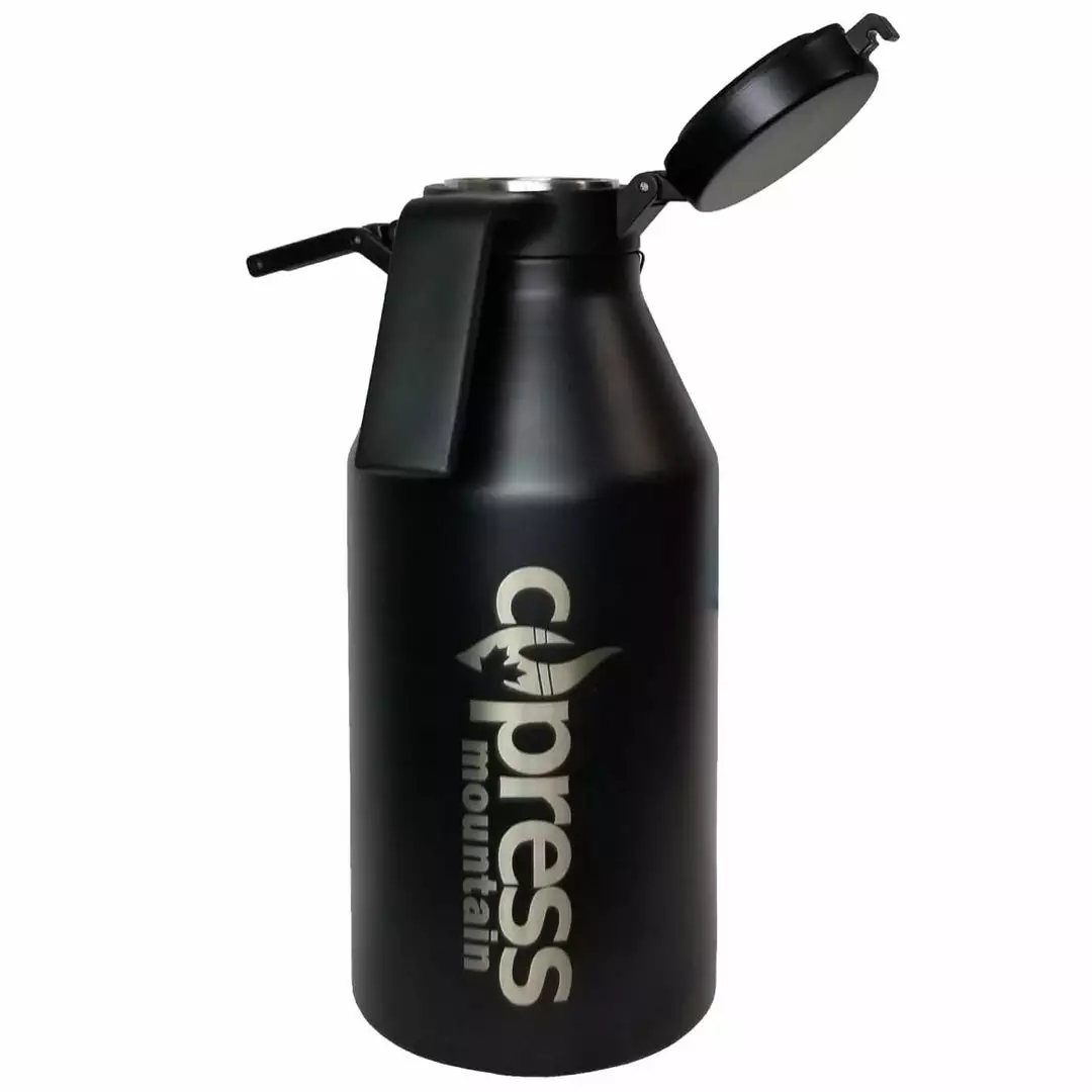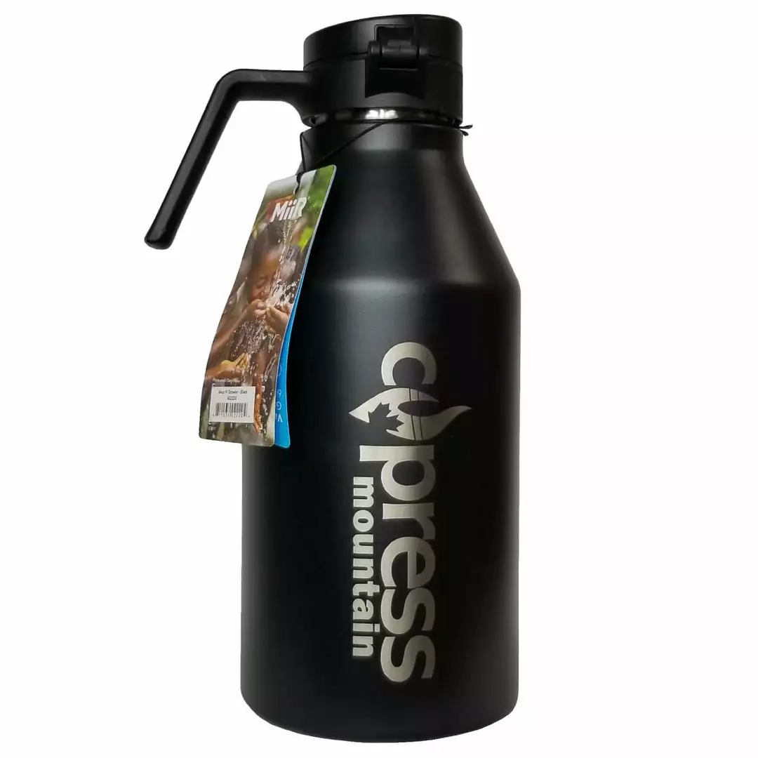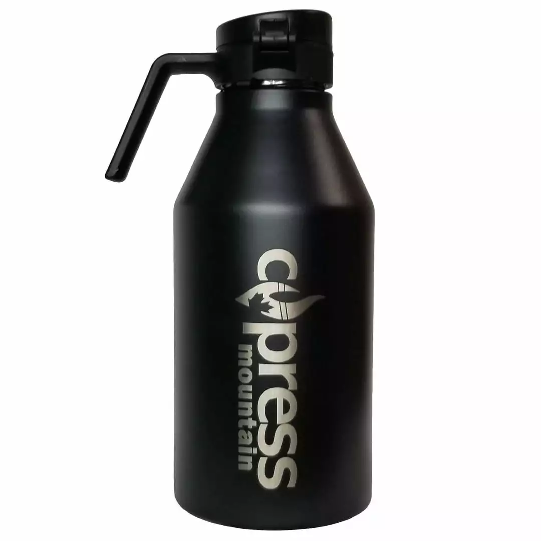 Best in class Thermo 3D Double Wall vacuum insulation eliminates condensation and keeps hot stuff hot and cold stuff cold in the Miir 64 oz Growler. Hard-shell powder Coating on colored growlers adds grip, protects and preserves your product’s appearance and the Cypress Mountain in British Columbia logo front finish.Â