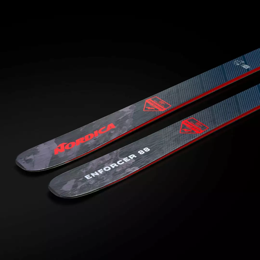 Powerful and precise, the Enforcer 88 yearns to turn. Skiers who spend most of their time on trails love its stability and penchant for speed. Armed with a narrower waist, it pairs a full wood core with two sheets of metal and carbon stringers that run the length of the ski. In addition to dampening vibrations for an especially smooth ride, this creates an energetic ski that’s exceptionally responsive and quick edge-to-edge. Its early rise tip and slight tail rocker enhances versatility, offering a nimble attitude and the ability to readily absorb bumps. And although it’s the newest addition to the Enforcer collection, this ski already has a reputation for boosting confidence, performance, and fun. Carve your signature all over the mountain with the Enforcer 88.