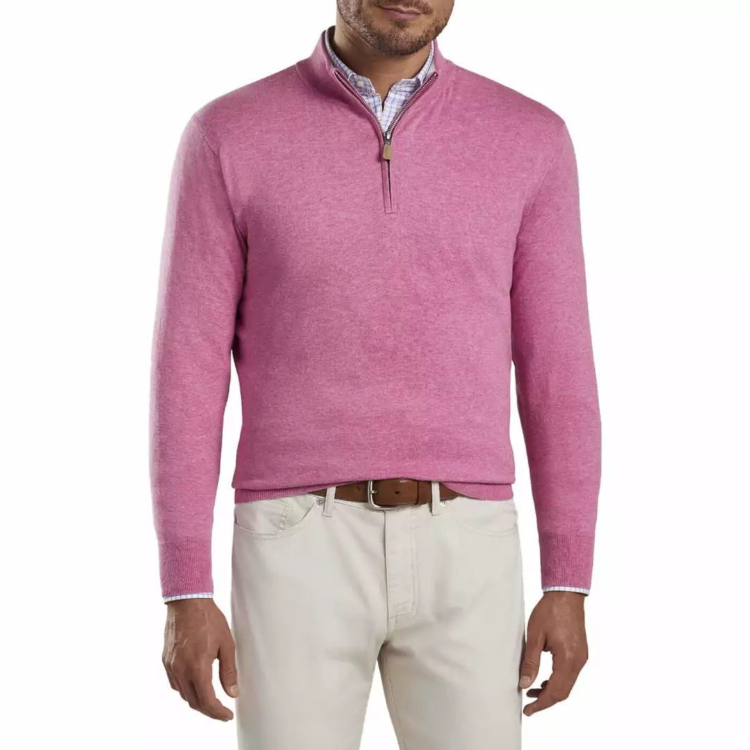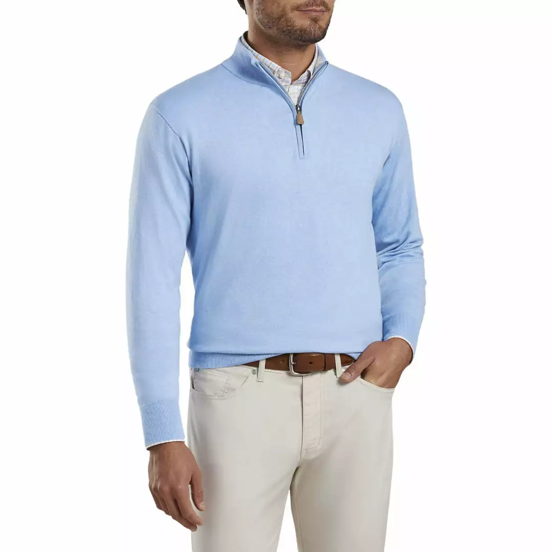 Striking a perfect balance between casual and sophisticated, this Crown Soft quarter-zip is made from an exceptionally soft, lightweight blend of pima cotton, silk and cashmere. A hint of performance yarn works to reduce wrinkles and maintain shape. Finished with a contrast interior collar and rib-knit cuffs and hem. Layer over Peter Millar Sport Shirts for a complete look.