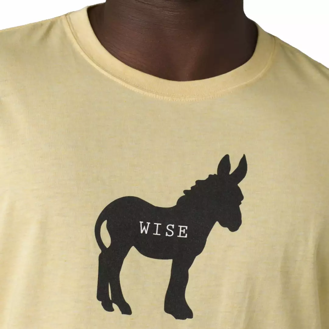 Clothing can say something about your personality with the Wise Ass Journeyman T-Shirt from Prana. This lightweight T-Shirt for men features a graphic of a donkey with the word “WISE” over it. Great for anyone looking for a laugh.