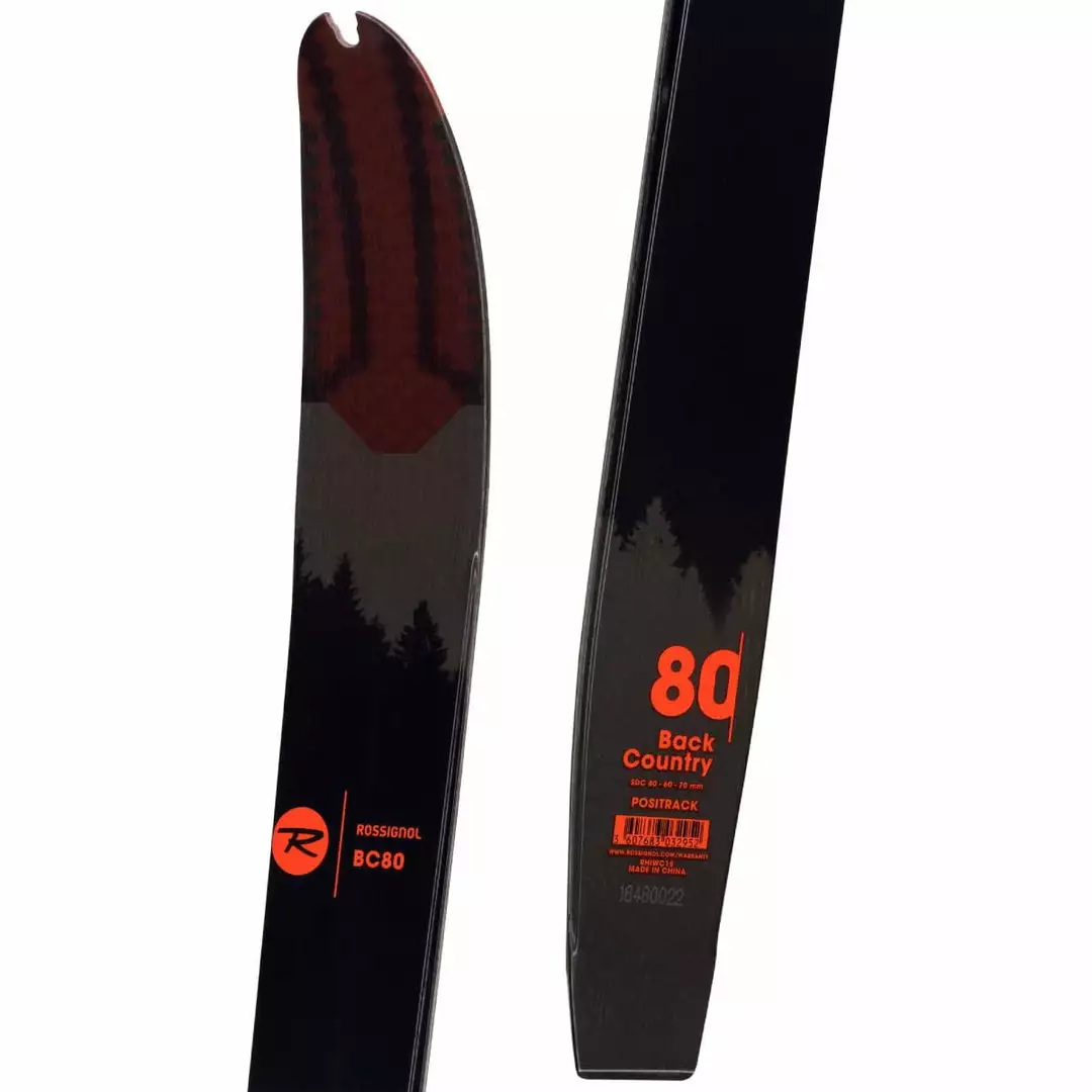 Open up the world of backcountry touring and the search for turns with the BC 80 Positrack. The ski has a lightweight core to let you move swiftly through varied terrain, while generous sidecut and modest tip rocker encourage easy turning when you find the perfect slope. A waxless Positrack base provides confident grip and glide in all snow conditions with no prep. Aftermarket climbing skins are available for touring.