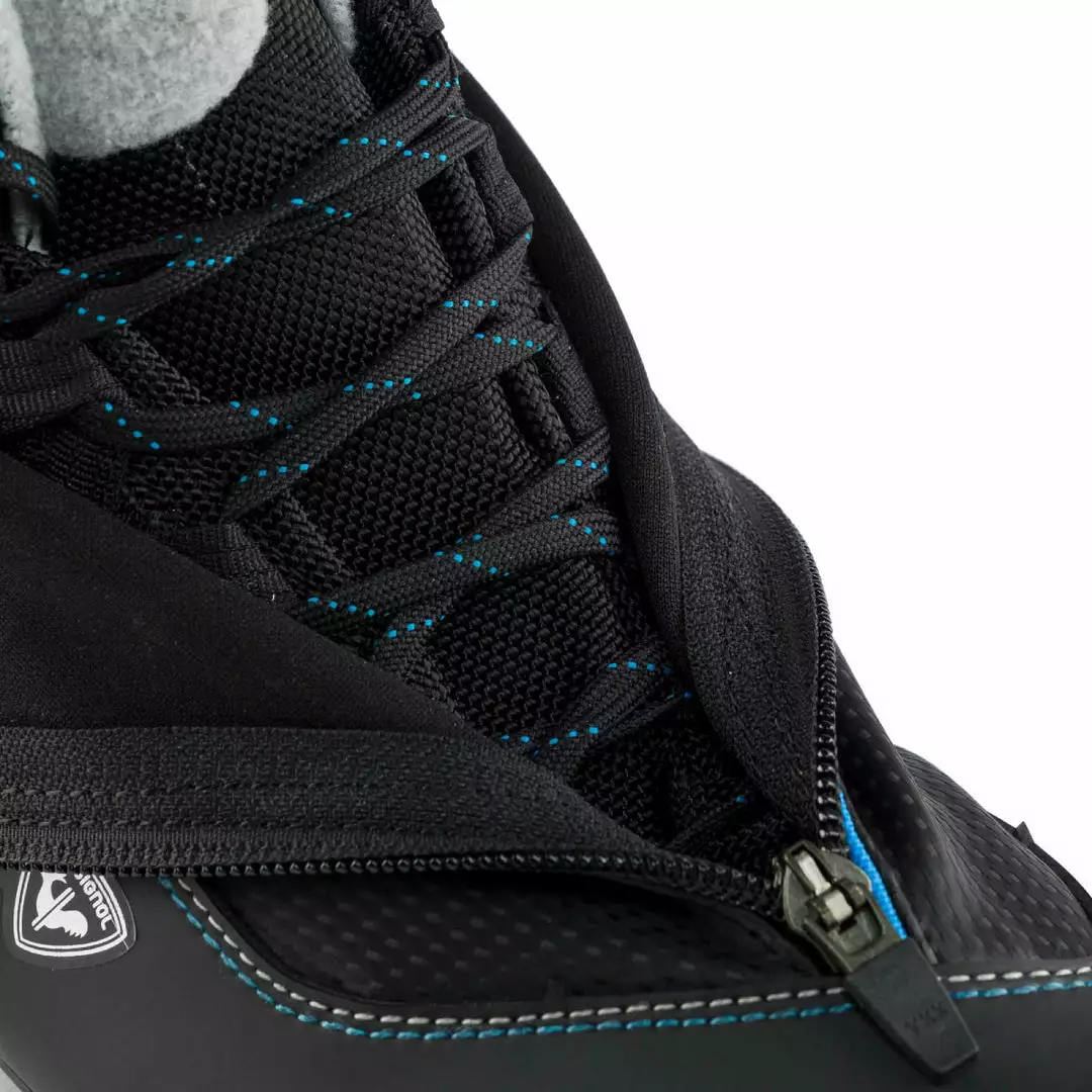 The X2 is an introductory touring boot with warmth and stability for all-around use. The boot’s tall cuff and zip-up lace cover seal out snow, while a Thinsulateâ„¢ lining wraps your foot for warmth. The touring-specific sole and lateral heel support provide stability for all-around trail skiing.
