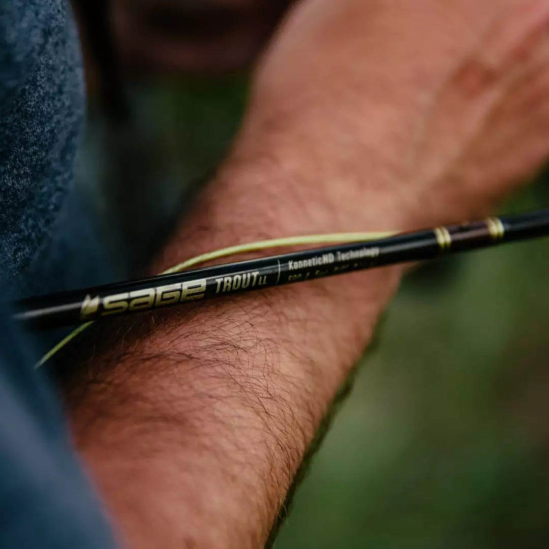 With a delicate touch and medium action, the TROUT LL family has been designed with the trout angler and dry flies in mind. Through blank taper optimization and specialized length offerings, the TROUT LL is perfected for wade fishing, closer casts, small flies, and light tippets. A relatively supple tip maximizes light tippet protection and gives way to a smooth easy-loading mid-section that increases feel and feedback throughout the casting stroke. When the hatch is on, the TROUT LL is an angler’s best friend. Drawing inspiration from historic Sage rods of the past, the TROUT LL is a nod toward tradition with a classic appearance and a smooth casting taper, yet adds modern performance features in accuracy and loop control through the backbone of Konnetic HD blank material.