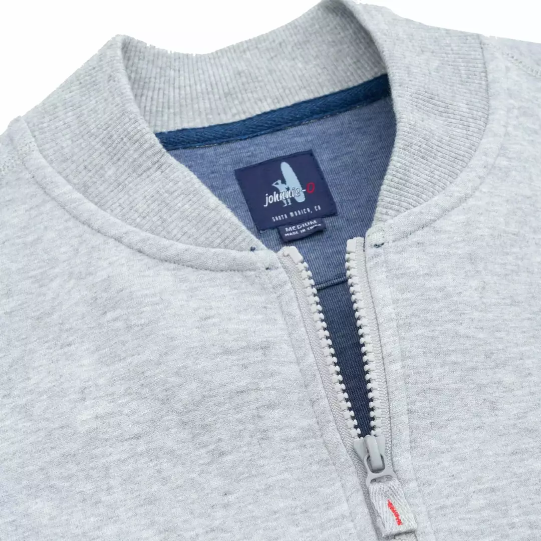 The Riser Baseball Jacket from Johnnie-O will become your new go-to jacket. The light gray heathered pattern makes the Riser the perfect layering piece with a tee and jeans. The Riser includes subtle but smart details like the bomber neck detail and suede patch that elevate this easy-to-wear jacket.