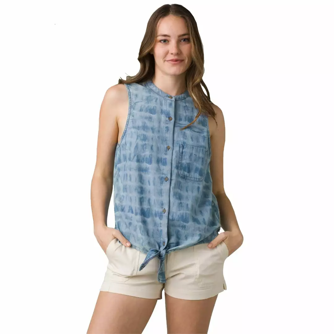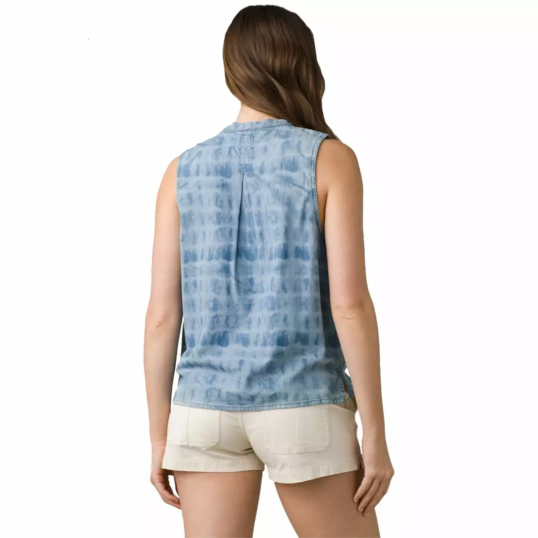 The Sunrise Peak Top for women is a shirt that never goes out of style. This sleeveless denim-look shirt is 100% sustainably made from soft chambray. Bring on the summer fun with this timeless classic.