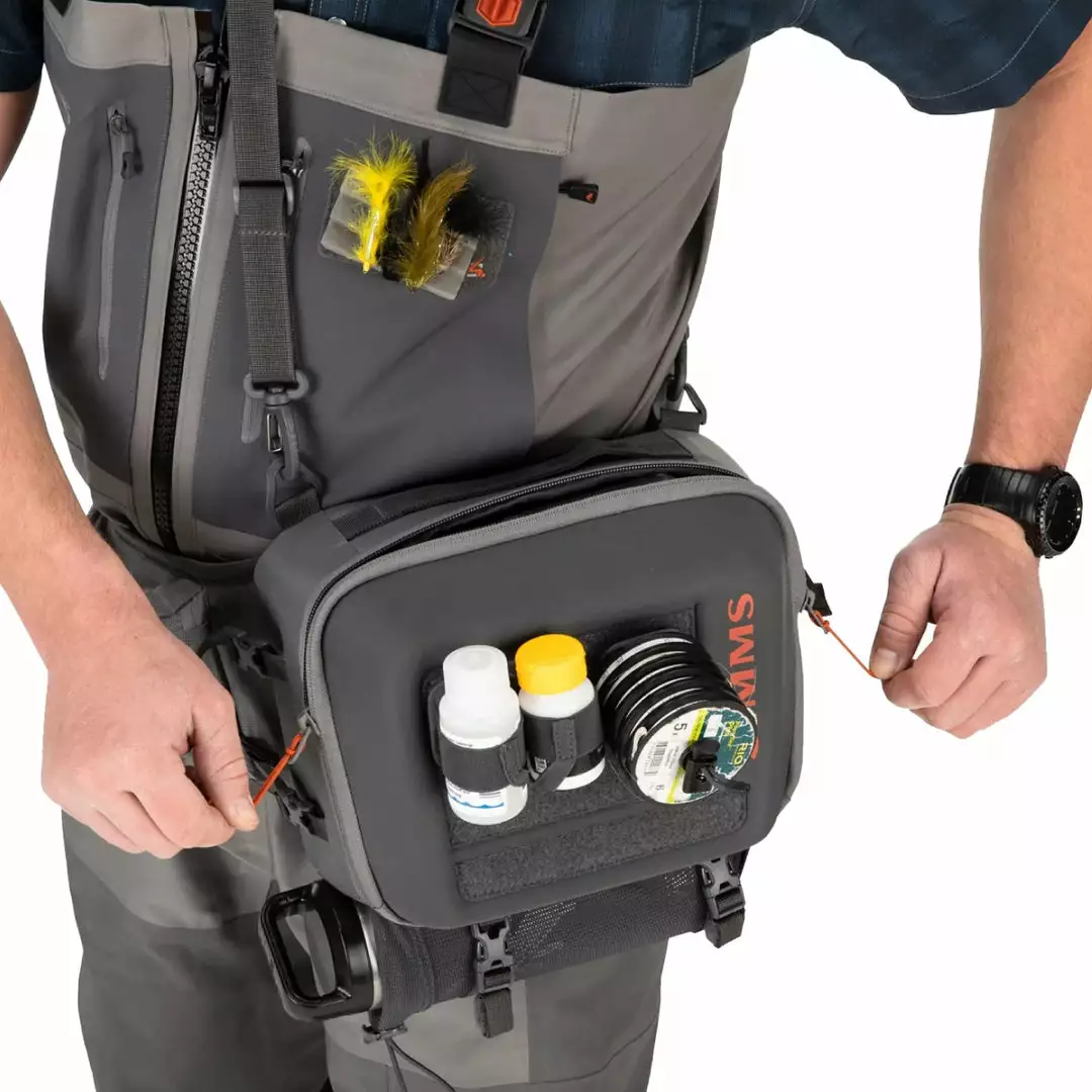 - Accessory attachments include Tippet Caddy and Floatant Holster, internal keyclip