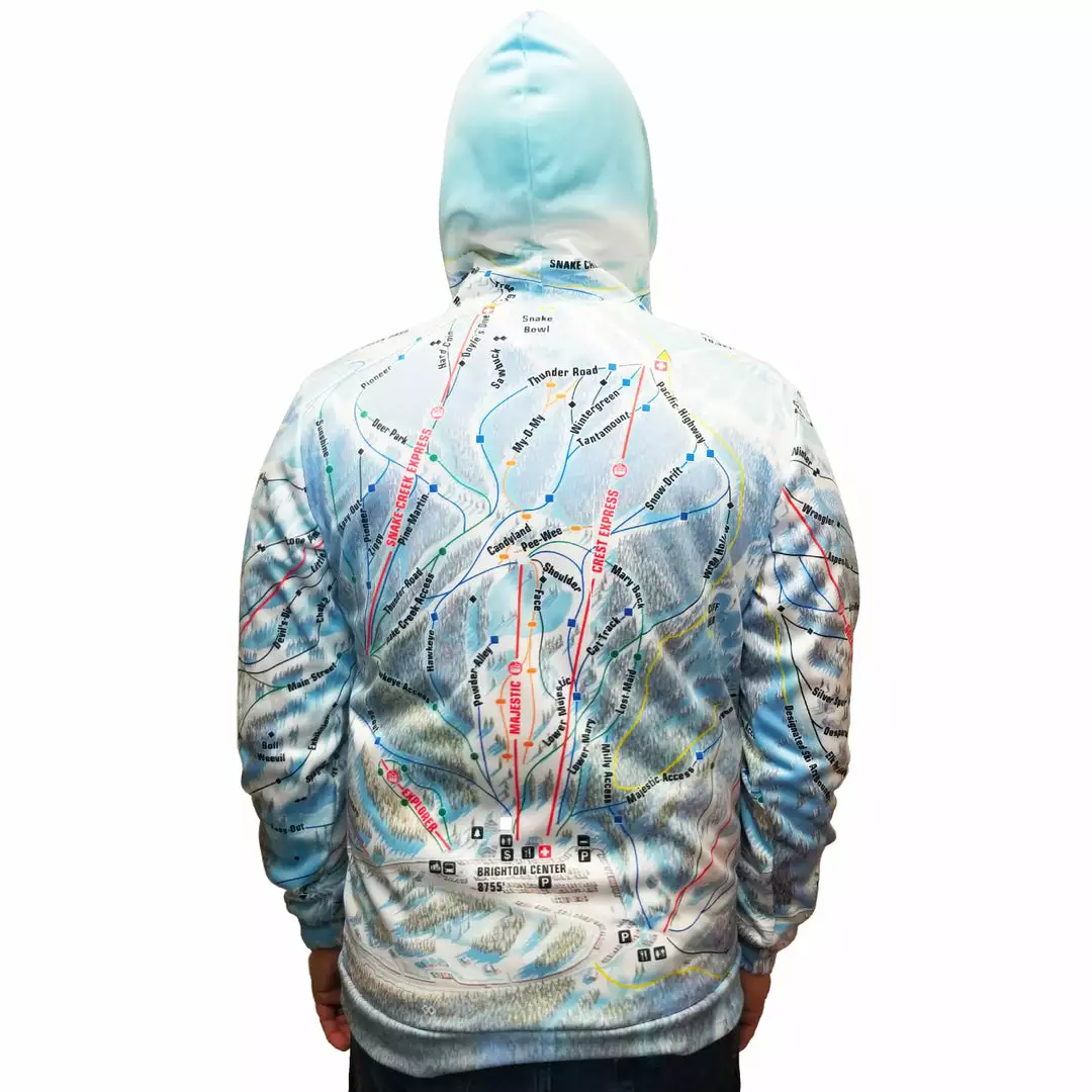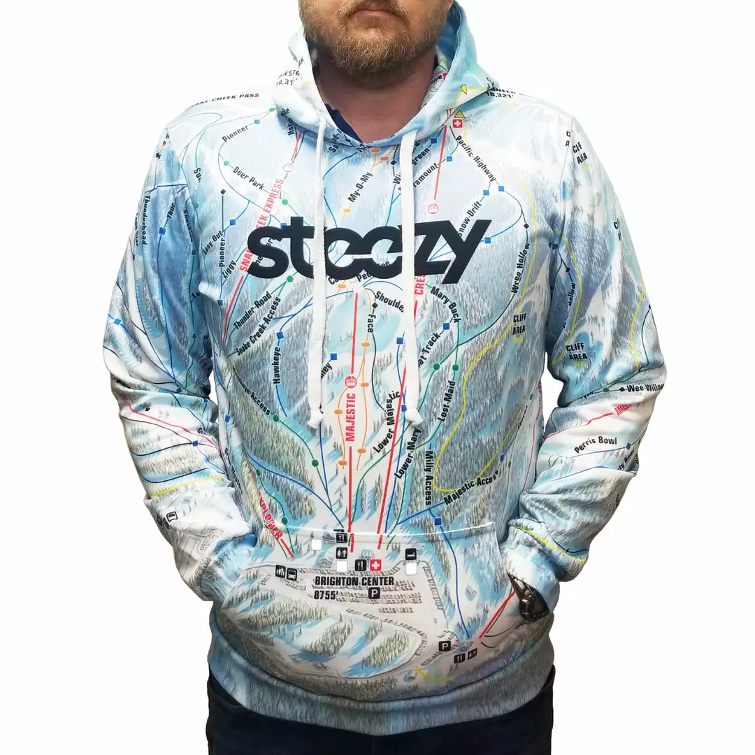 A Steezy collaboration with Brighton Ski Resort in Utah features officially licensed ski resort trail maps on adult hoodies.