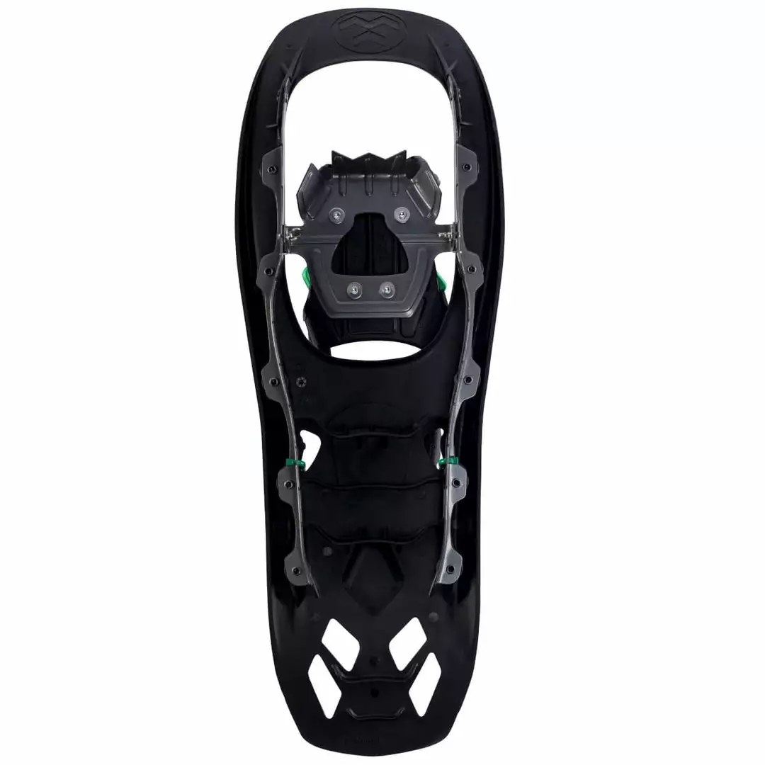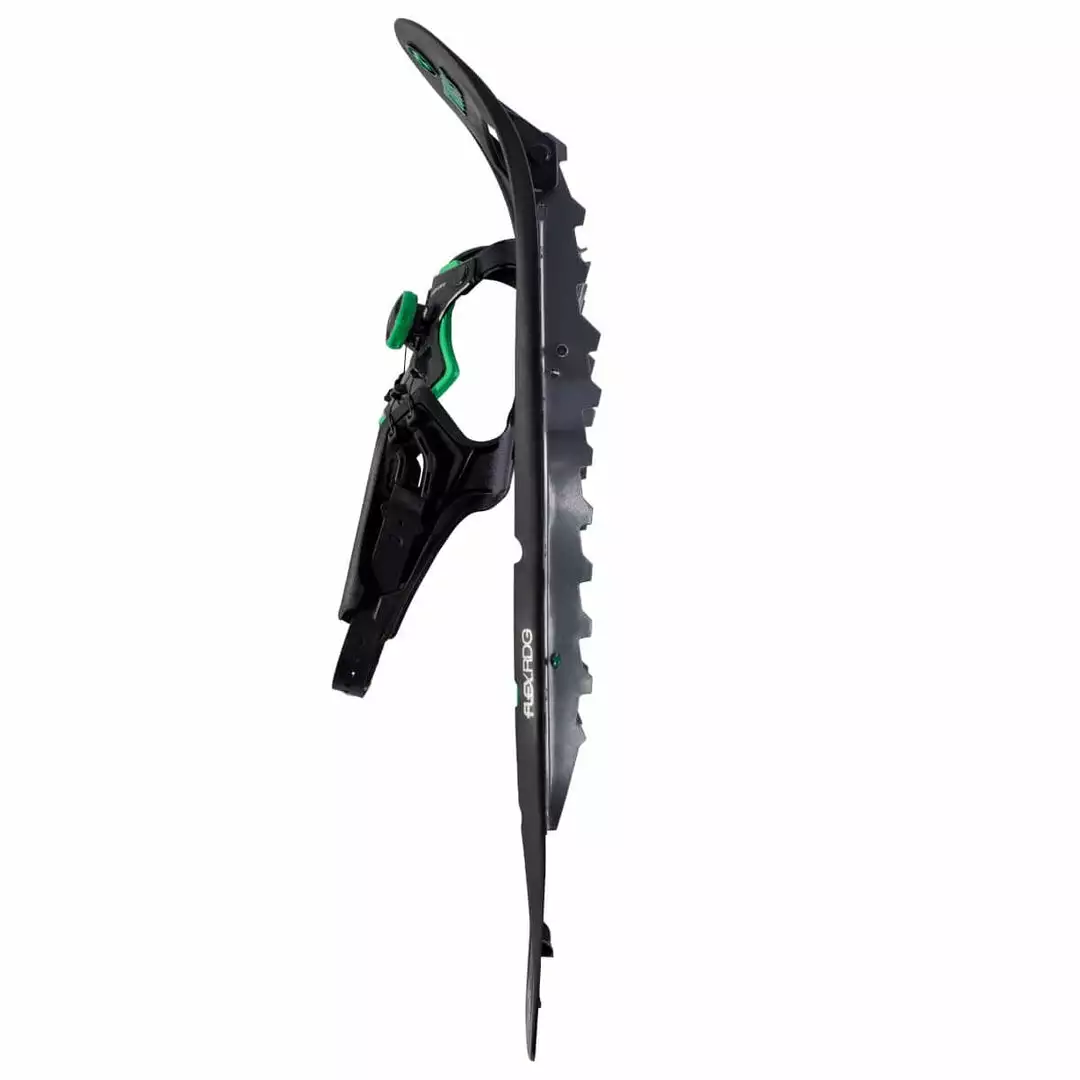 Designed to tackle a wide variety of mountainous terrain, the Flex RDG has the functional features you need to crush a hike and then some. Its composite Torsion Deck™ allows articulation throughout the body of the snowshoe to enhance traction, preserve your natural gait and improve comfort. FLEX Tail™ technology rounds out the deck’s design for a more natural feeling heel to toe roll and shock absorption. The Flex RDG also features our intuitive CustomWrap™ 2.0 binding which integrates the user-friendly BOA® Fit System for a fast, effortless, precision fit. What makes this binding truly unique is the incorporation of the heel strap into the overall construction, creating an exceptional full-foot precision fit with the simple turn of a dial. With the confidence-inspiring traction provided by the Tubbs toe crampon and 3-D curved traction rails, the Flex RDG is an excellent all-around snowshoe for winter hiking.