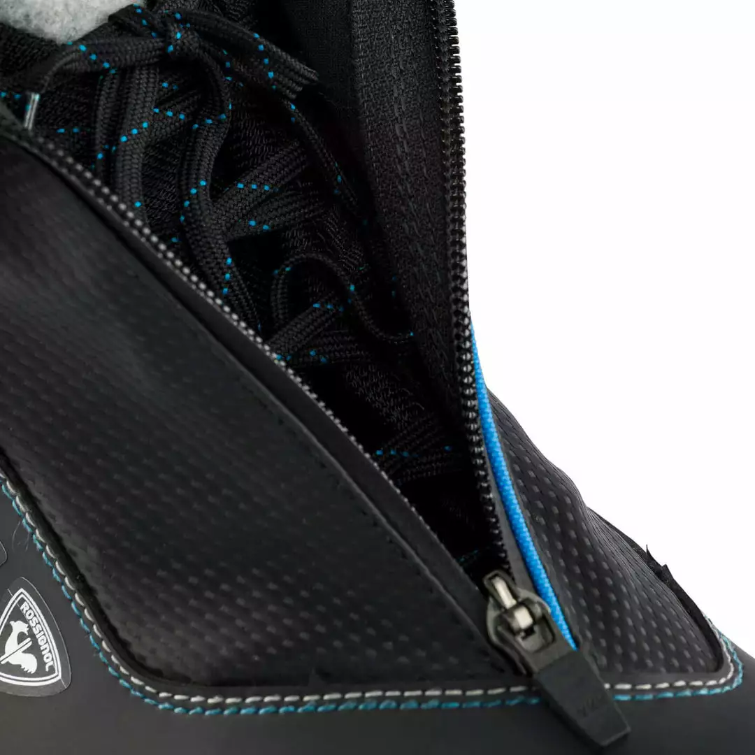 Kick. Glide. Explore. Move between groomed tracks and off-trail explorations in the women’s X3 touring boot. Designed with adventurous recreational skiers in mind, it features the added support of a fixed cuff and powerstrap plus our touring-specific sole. A thermo-moldable fit and external lace-cover offer all-conditions warmth.