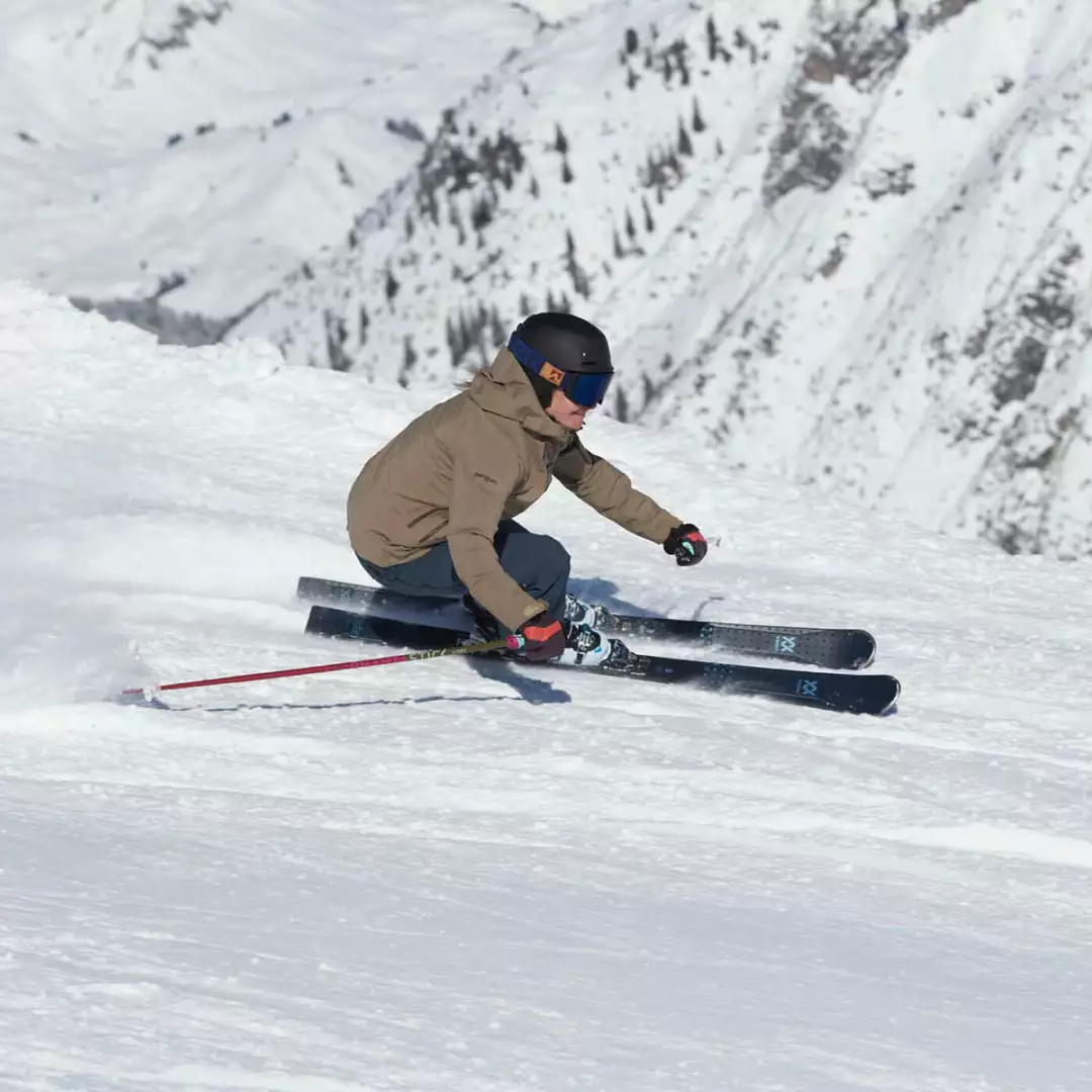 A ski for the fun-loving woman who is primed for the next step on her skiing journey, ready for a little more speed and a little more terrain on piste. As a beginner skier improves, the mountain opens up, and the Flair 76 is there for that development. The partial sidewall construction creates a smooth, easily maneuverable turn, while keeping it sporty underfoot when it’s time for more dynamic skiing. As ambitions and confidence grows the 76mm waist is an optimal width for entering more intermediate and advanced runs. And the vMotion1 Binding supports a remarkable power transmission throughout the entire ski, with the option to ride a GripWalk sole on your boot in the process. The Flair 76 will only help deepen a relatively new skier’s love for the mountains, and encourage them to continue exploring.